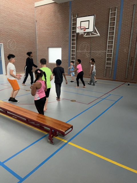 Na schooltijd gaan we eerst wat eten en drinken en hierna trekken wij onze gymkleren aan. Meestal spelen we een spelletje aan het begin om even warm te worden. Hierna legt de juf uit wat we die dag gaan doen. Op deze manier komen de kinderen in aanraking met vele sporten.